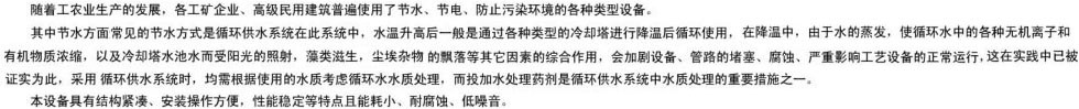 3. 计量装置及投加方式:JY系列中有两种:(1)是采用计量泵投加。(2)用水射器投加,转子流量计计量。如泵前投加,水射器可以不用,水射器需要压投入在2kg/cm