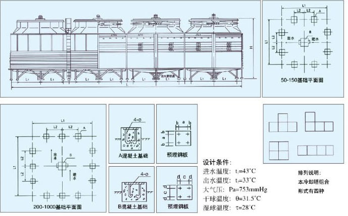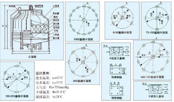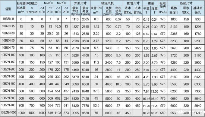 10BZN系列中温型逆流式玻璃钢冷却塔基础参数表