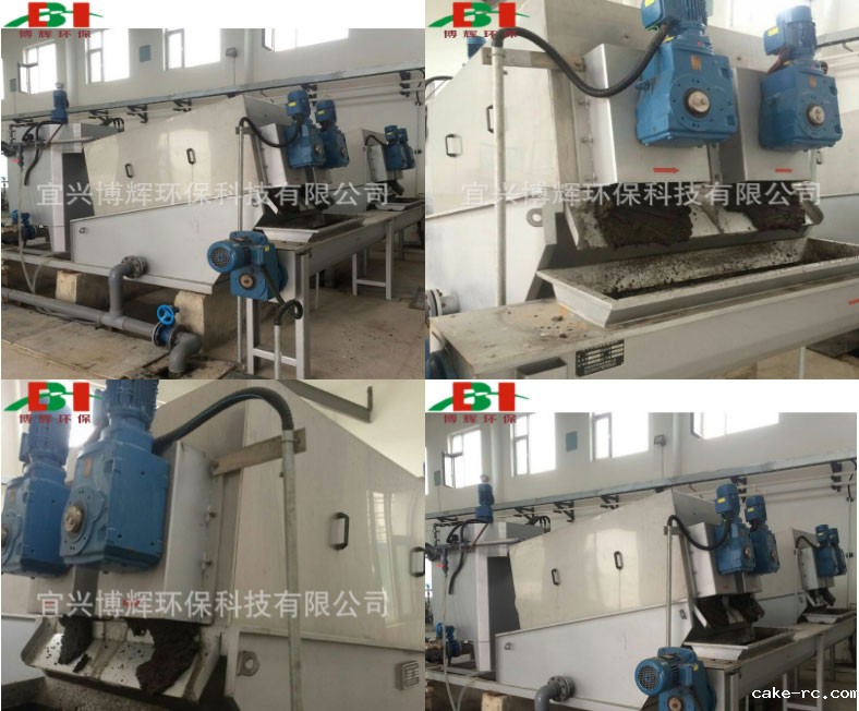 2、在絮凝混合槽内注入高分子絮凝剂,通过搅拌后形成矾花,经过叠螺主体浓缩部的重力浓缩后进入脱水部。